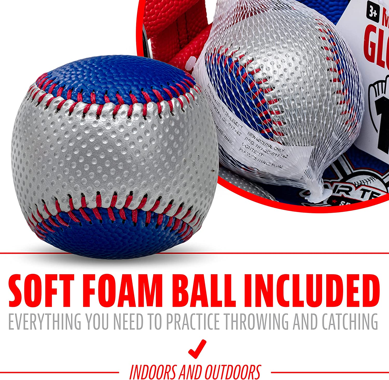 Franklin Sports Kids Baseball Glove + Ball Set - Air Tech Youth Teeball Glove - Boys + Girls Children's Glove + Ball - Right Hand Throw - Red/Blue - 9"